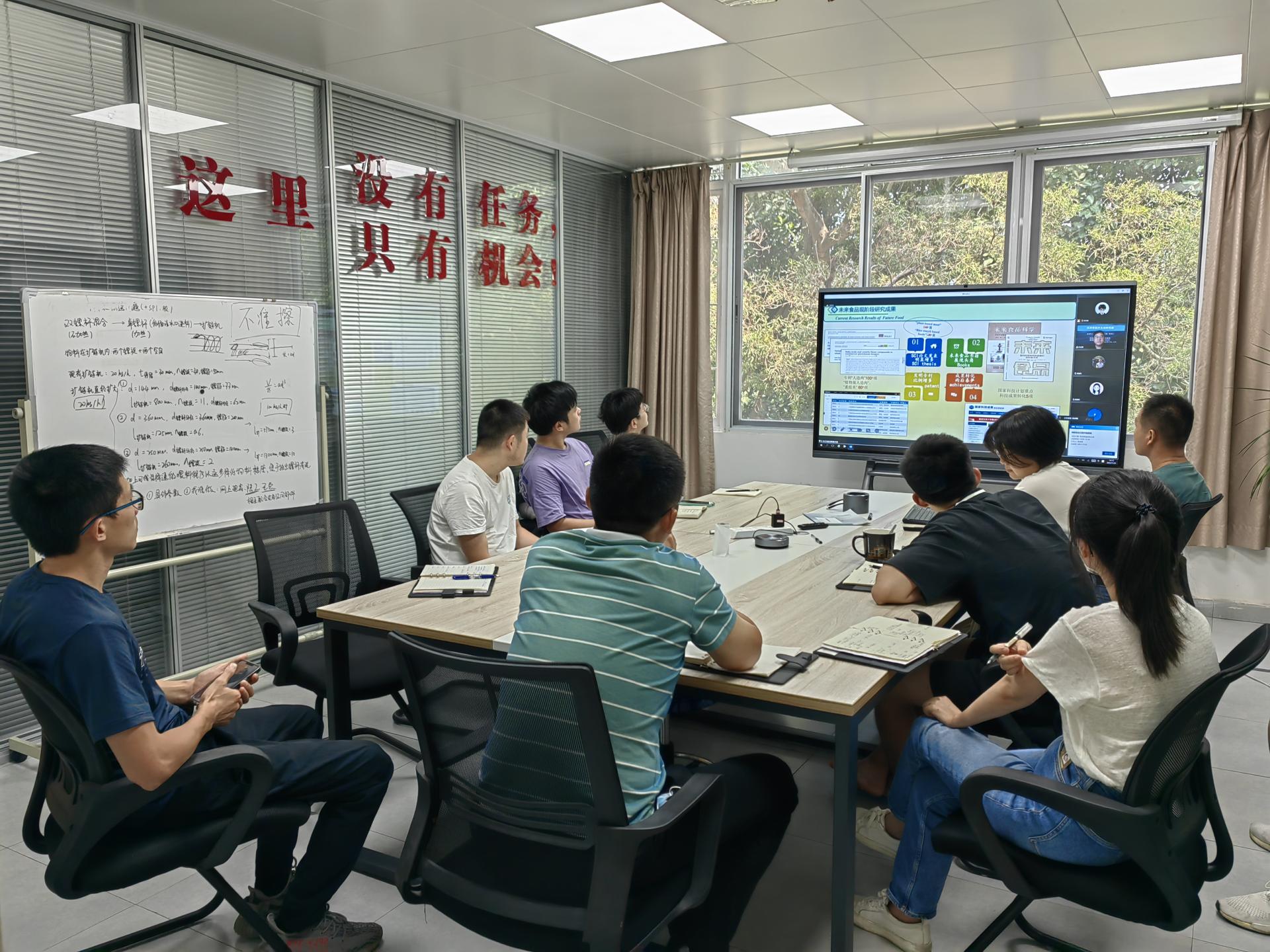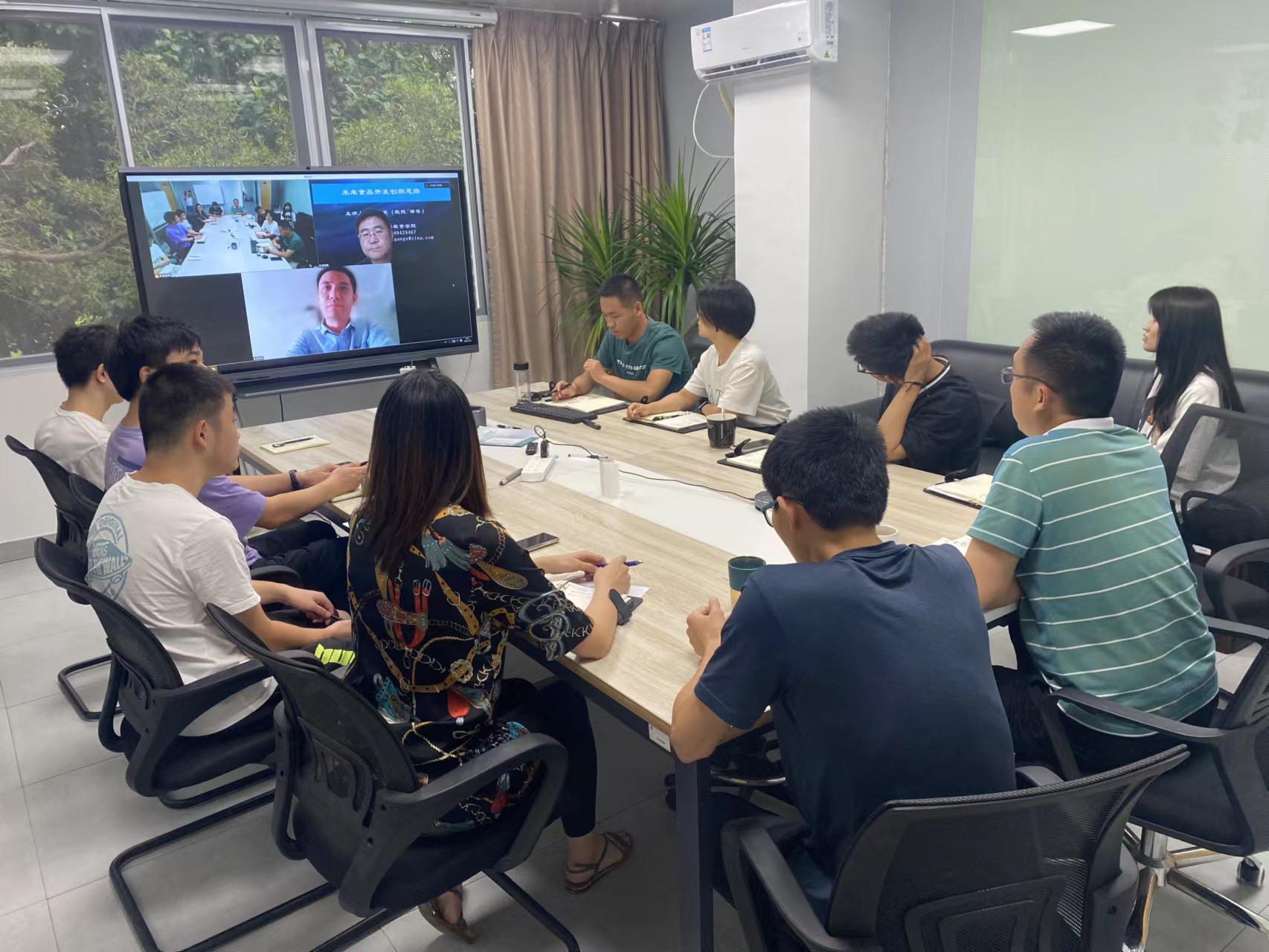 讲座结束后,肖老师与中心研究团队成员就重组米、植物蛋白素肉的发展趋势及关键工艺技术等问题进行了深入地交流与探讨。