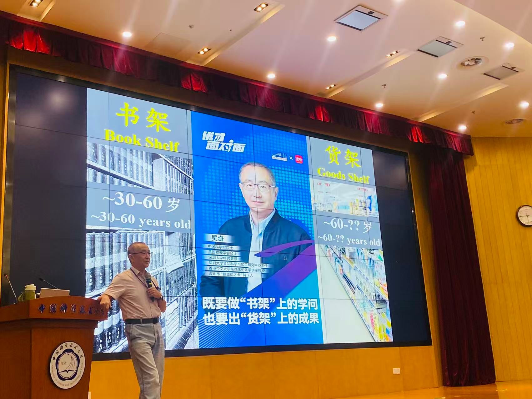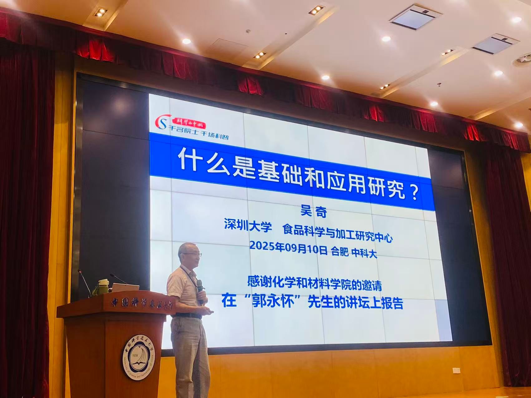 2025 年 9 月 10 日,在全国第四十一个教师节这一特殊日子里,中国科学技术大学化学与材料科学学院迎来了一场学术盛宴。中国科学院院士吴奇作为 “郭永怀讲坛” 第三十六讲的报告人,为老师和研究生们带来了一场题为《何为基础和应用研究?》的精彩专题报告。300人的物质科研楼报告厅座无虚席,还有一百多名师生站在两侧及后排通道聆听了近一个半小时的报告,并参与了半个小时的热烈讨论。报告由化学与材料科学学院执行院长刘世勇教授主持。