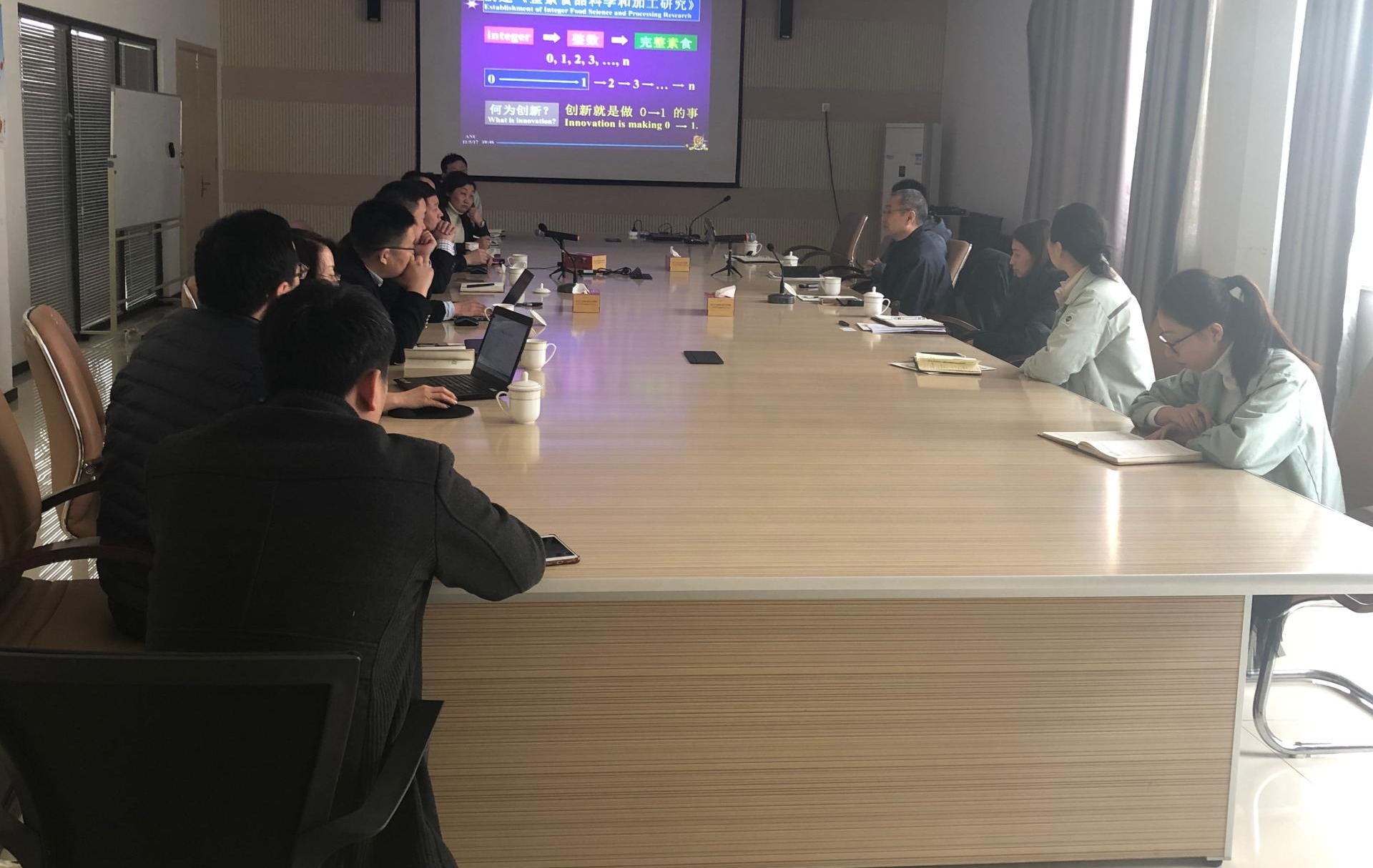 交流从企业代表介绍公司基本情况开始;随后,吴奇院士介绍了此行目的并做《植物蛋白精深加工的共性与特性》分享。在答疑互动环节,来自企业市场部、研发部和生产部的人员围绕生产和研发中遇到的问题,积极参与互动,中心团队尽可能从科学角度给予了回复。之后团队参观了该公司的研发中心、低温豆粕生产线、大豆拉丝蛋白生产线和大豆分离蛋白生产线。